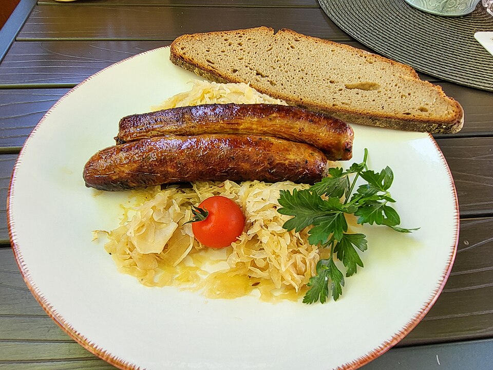 3 Thurnauer „Blaugsudna“ in süß-saurem Zwiebelsud, dazu Stollen vom örtlichen Bäcker 8,90 €